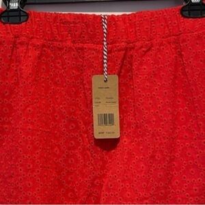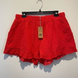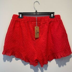 Stylish red shorts with eyelet design. Features a ruffle hem. Perfect for casual outings. NWT.