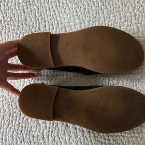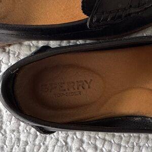 Classic black leather loafers by Sperry. Easy slip-on design. Ideal for versatile wear.