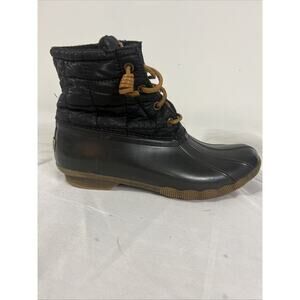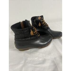 Sperry Black Saltwater Quilted Duck Ankle Boots Womens 8.5 M STS80755 Waterproof