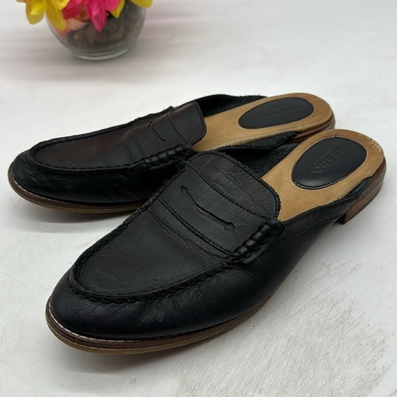 Sperry Black Slip On Leather Penny Loafer Mule Size 10 CM5455C