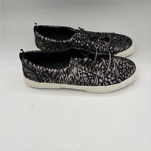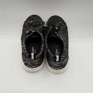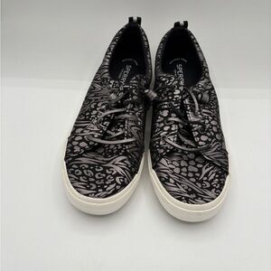 Stylish Sperry sneakers with a unique black and gray pattern. Comfortable and trendy. Perfect for casual wear. Like New Condition!