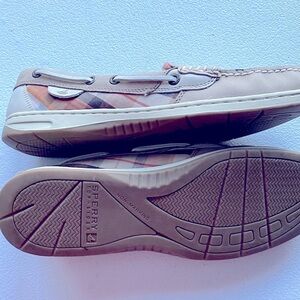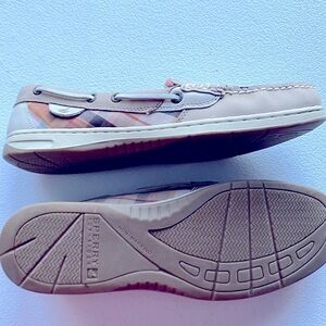 Sperry Boat Shoes Tan Tassel Loafers orange cream plaid size 10