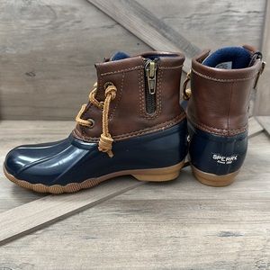 Kids Sperry Saltwater Duck Boot in navy blue and brown. Worn in great condition.