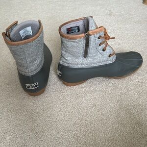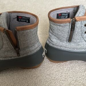 Light gray part is soft cotton however dark gray and tan bottom is rubber being waterproof