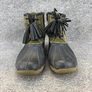 ✅Sperry Boots Womens 8 Saltwater Tassel Corduroy Duck Boots Olive Black NO INSOLE