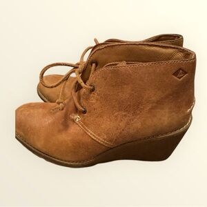 Sperry Boots Womens Celeste Prow Ankle Booties Brown Leather Wedge size 7