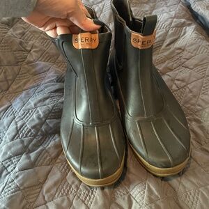 Sperry Chelsea Rain Boot. Only worn a few times. They are a size 6.5 mens size boot. I bought and wore them myself and wear a women’s size 8.