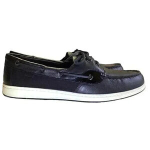 Sperry Coastfish 2Eye Leather Women 11M Lace Up Boat Shoes Black NEW