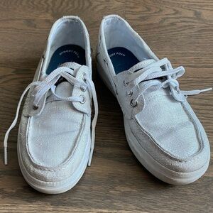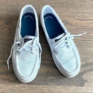 Adorable boat shoes Silvery with white sole Excellent condition, light wear.