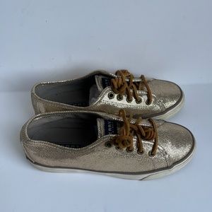 Sperry Crest Vibe Leather Reptile Gold Leather Barrel Lace Cushioned Sneaker