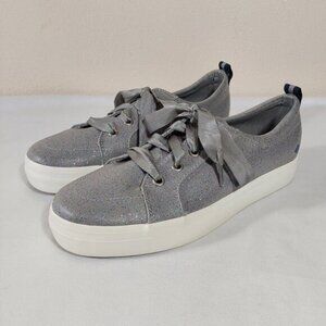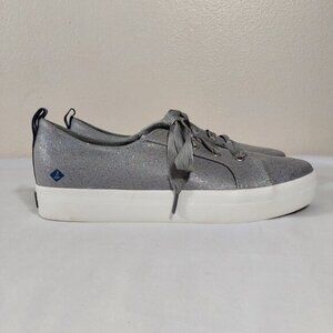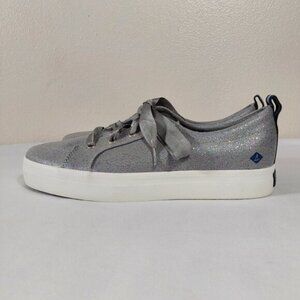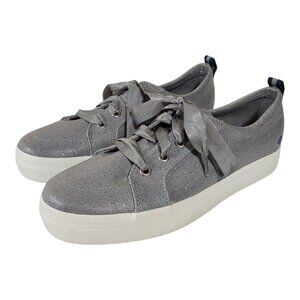 Sperry Crest Vibe Silver Sparkle Ribbon Topsider Sneaker - Excellent Cond - 3.5