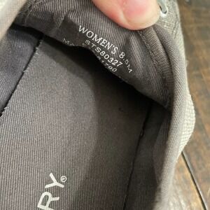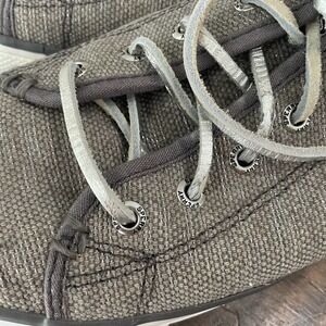 Gray Sperry lace up women's shoes, hard to photograph but they have a slight shimmer woven throughout, including metallic silver leather laces size 8.5