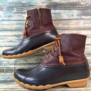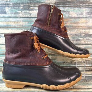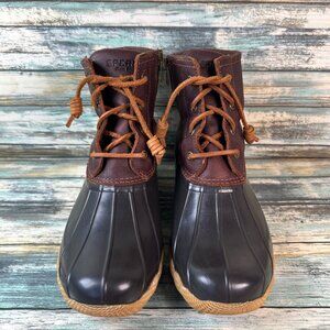 Sperry Duck Boot Womens Saltwater Sz 8.5 Brown Leather Rubber Ankle Winter Rain.