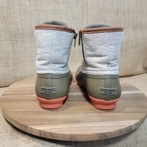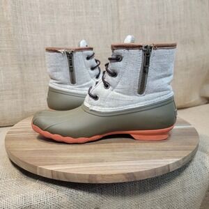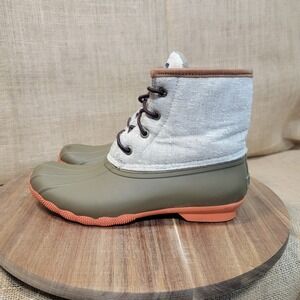 Sperry Duck Boots Ankle Rain Boots Waterproof Lace Up Gray Green Women's Size 7