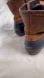 Durable duck boots with dark brown leather and navy rubber. Ideal for rainy days and snow. Barely worn and keep your feet warm!