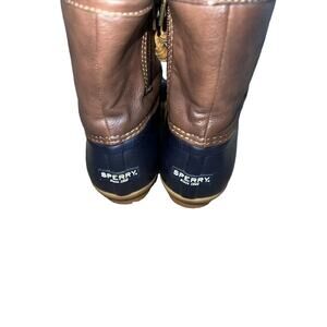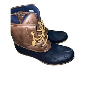 Size 6 women’s sperry boots. They are in good condition. The laces on one side look like they have broken off a bit and are shorter than the other side. Please message me with any questions. Thank you for looking.