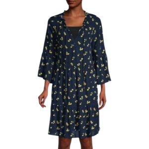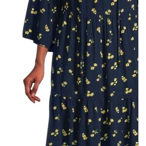 Contrast floral print defines this easy-going A-line dress finished with a tiered skirt.