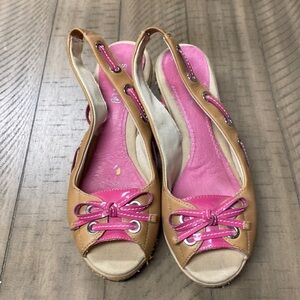 Sperry Floral Embroidered Wedge Sandals Tan Pink Nautical Espadrille 7.5