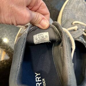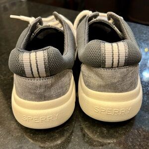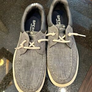 Sperry Gray Boat Shoes with White Soles and Canvas Upper