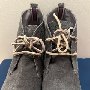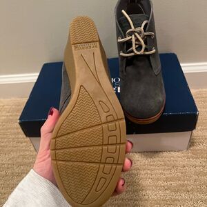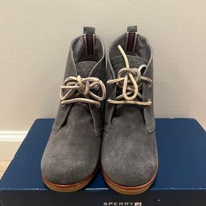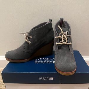 Sperry Grey Navy Suede Harlow Wedge Ankle Bootie