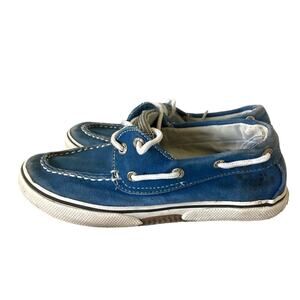Boys’ Slerry Halyard boat shoes in good preowned condition. Some signs of use. There is some staining on one side of left shoe. Please see images.