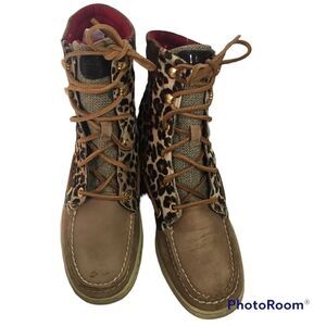 Sperry Hikerfish Brown Leather Leopard Lace Up Ankle Boot Sz 6 9173626 Cheetah
