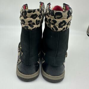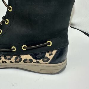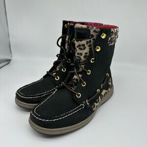 Sperry Hikerfish Leopard Print Black Leather High Top Boots Womens Size 7.5