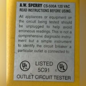 Sperry Instruments CS550A Circuit Breaker Finder, Identifies Correct Circuit or Fuse, Audible/Visual Alert, 120V AC, 50 to 60Hz/ Sperry makes the job of locating electrical circuits (AC circuits of 110-125 volts) quick and easy. Turning off the correct breaker is critical / Quickly and easily identify correct circuit breaker or fuse protecting a specific electrical circuit