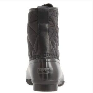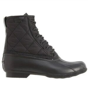 Defy rainy days in Sperry's Saltwater duck boots, designed with a waterproof rubber shell and a grippy rubber outsole for steady traction. Features: Sperry has been in business since 1935 and is best known for its razor-siped, wet-traction outsole inspired by the natural paw grooves of the founder's sure-footed cocker spaniel Waterproof rubber shell Quilted water-resistant upper Lace closure Insulated Fleece lining Cushioned footbed Non-marking, lugged rubber outsole with Wave-Siping® for traction on wet or dry surfaces