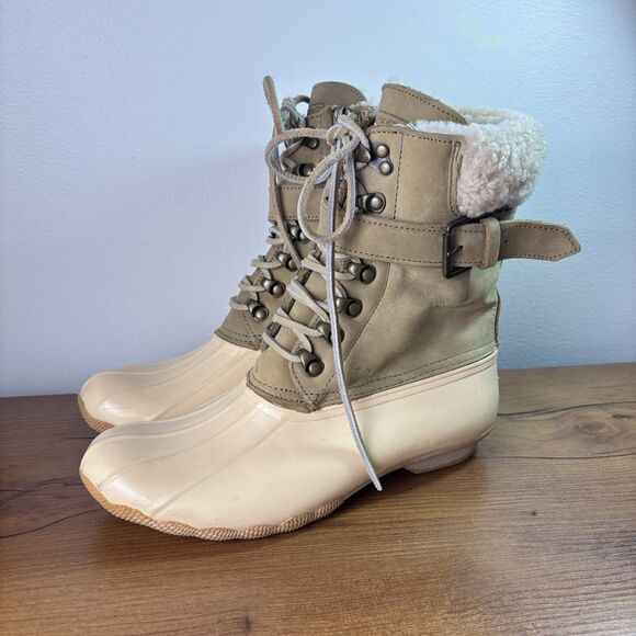 Sperry J. Crew Shearwater Duck Boots 100% Wool Lining Women's Size 8 Ivory