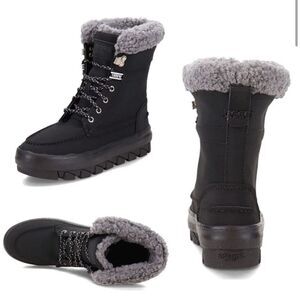 Hiking cozy warm rain snow cold boots Shesrling faux fur suede