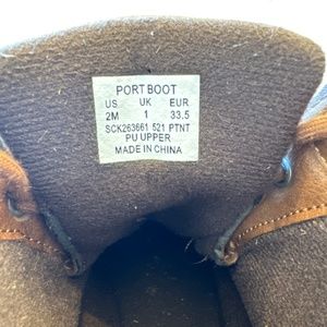 Stylish Sperry boots for kids. Brown leather upper. Black rubber toe. Durable and comfortable.
