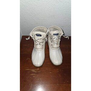 Sperry Kids Saltwater Duck Rain Glidden Boots Tan Canvas & Rubber Size 13