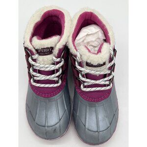 Sperry Kids Size 13 Duck Boots Gray & Pink Faux Fur Lined Waterproof Winter
