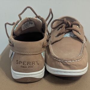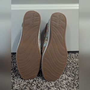 Step into style with these chic floral tan boat shoes. Perfect for casual outings, these shoes offer comfort and elegance. The floral design adds a touch of femininity to your look.