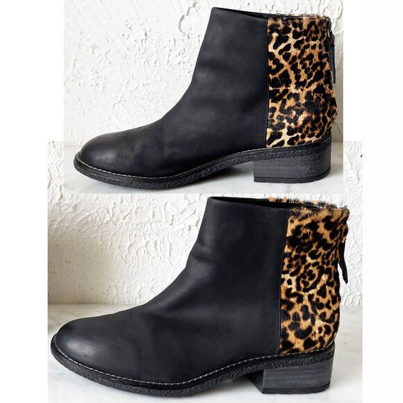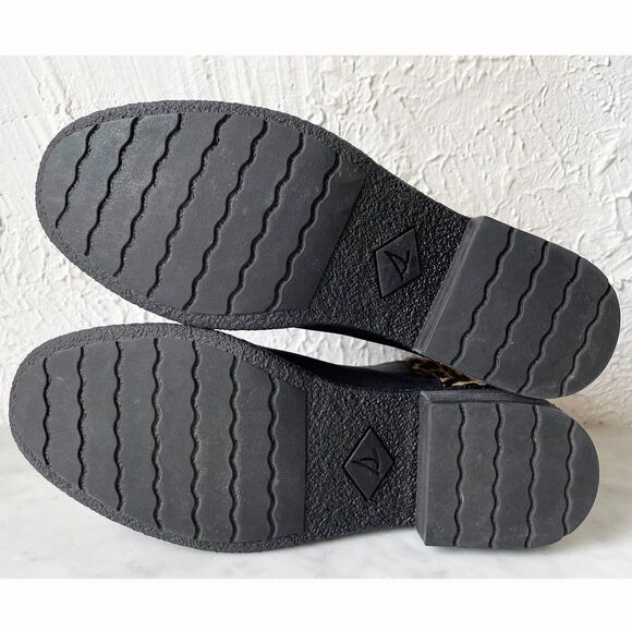 Sperry Maya Belle Black Leather/Leopard Print Chelsea Ankle Boots - Women's 7