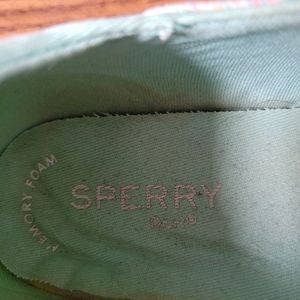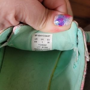 EUC Sperry memory foam slip on boat shoes with bungee laces. Super cute pattern in pink, mint, purple, and white. Size 4. These are women's 4, but Poshmark doesn't offer that listing size for women's shoes. From a non-smoking home, and I'm open to all reasonable offers. Bundle for more savings.