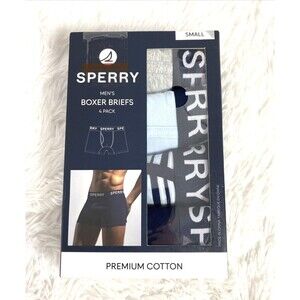 Sperry Men's Boxer Briefs Size S 4 Pack Premium Cotton Blue Gray. See pictures for more details. The Sperry Men's Boxer Briefs in size S offer a premium cotton blend in blue and gray solid colors. Featuring a comfortable and lightweight design, these boxer briefs are machine washable and made with breathable microfiber fabric for all seasons. The 4-pack of boxer briefs from Sperry is a classic and stylish choice for men looking for high-quality underwear with stretch for added comfort.
