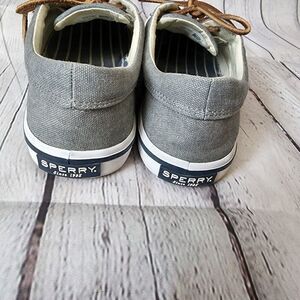 Sperry Striper II CVO men's sneakers. Size 8 1/2. Salt water washed canvas fabric gives a laid back beachy look. Tie up with rawhide laces. Non marking rubber out sole. Excellent condition. Worn very little.