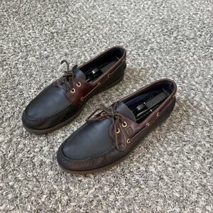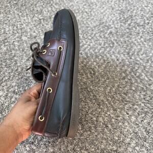 Sperry Men’s TopSider Black Brown Leather Boat Shoes Size 11 M Casual Nautical