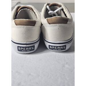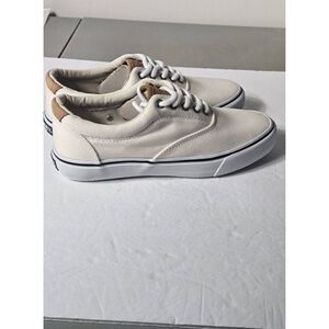 Beautiful white sneakers with leather tabs at pressure points. Size 7.5. Known for comfort and support, sperry shoes are constructed with best quality parts. Rubber soles help prevent slipping.