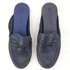 Sperry Mulefish Boat Shoes Womens Size 6 Navy Blue Distressed Leather Summer Preppy Beachy