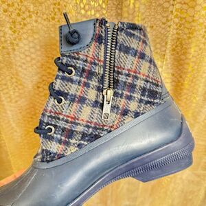 Sperry Navy Blue Saltwater Wool Plaid Duck Winter Boots Waterproof Snow Size 8