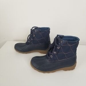 Gently used Sperry Quilted Port Boot in a size 1M. Color is navy with gold thread.