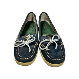 Sperry Navy Blue Leather with Silver Leather Tie on front