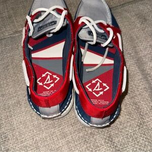 Navy and red Sperry boat shoes. Ideal for casual wear. NWOT. Men’s size 7