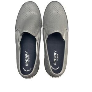 Sperry Pier Side Gray Leather Perforated Slip On Loafer Sneaker Women 7