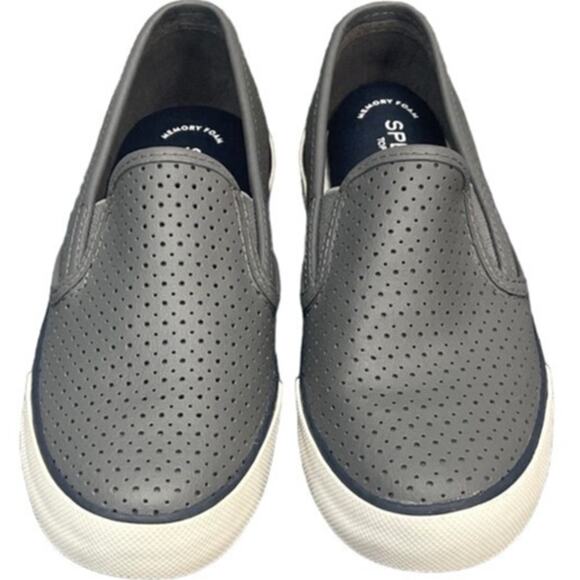 Sperry Pier Side Gray Leather Perforated Slip On Loafer Sneaker Women 7