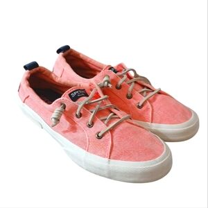 Sperry Pier Wave Light Wash Pink Neon Canvas Shoes Size 9