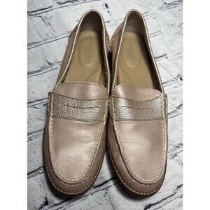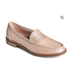 These Sperry flats feature a classic loafer design with a moccasin-style toe and a traditional penny keeper strap. The pink color adds a touch of elegance, while the slip-on style ensures comfort for everyday wear. Perfect for both casual and dressier occasions.